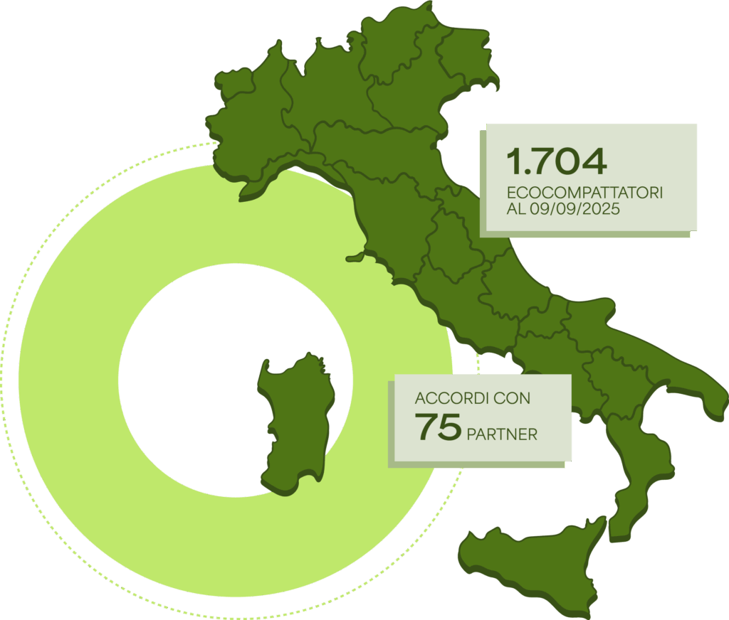 Abbiamo più di 1.502 ecocompattatori attivi sul territorio nazionale e collaboriamo con più di 118 insegne GDO.